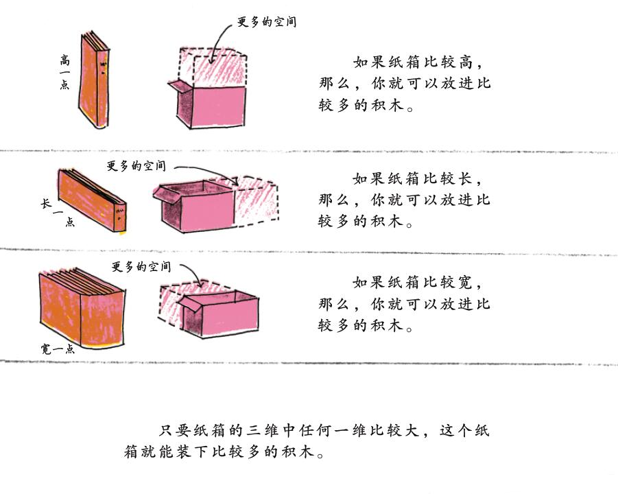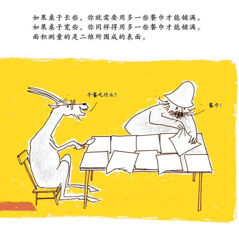 这是汉声数学图画书中关于长度、面积、体积的部分,用孩子身边最通俗的例子来解释说明,非常便于他们直观的理解这些抽象的数学名词。