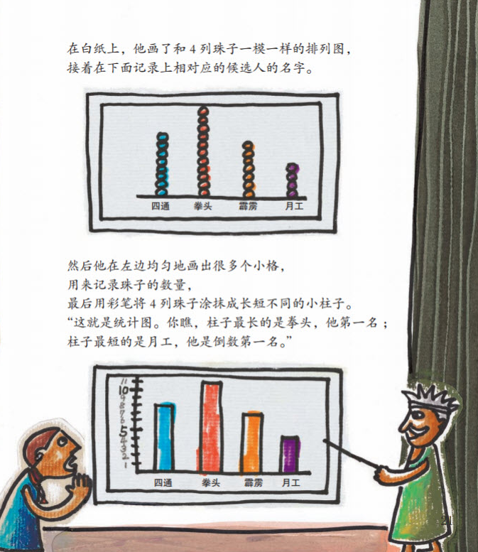 数学绘本中有两套语言系统,一套是推进故事的文学性语言,另一套则是说明数学知识的数学语言,数学语言中会出现大量的数学词汇、数学用语。