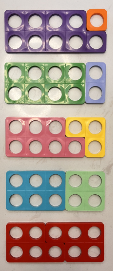 之前给大家介绍过的十格阵,也是深入掌握凑十非常好的工具,孩子通过直观的摆一摆活动,能够体会到整十的各种组成。