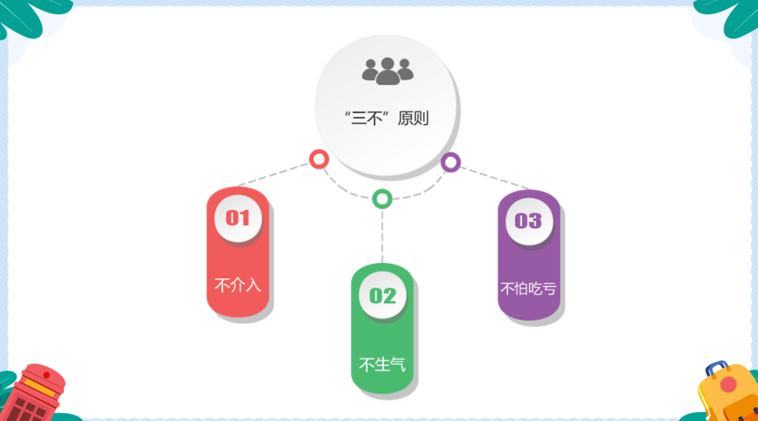 孩子在与别人合作,一起运动的过程中,难免会发生一些冲突,这时家长的态度很重要,其实孩子的世界很简单,在一起玩耍时,互相发生点小矛盾小摩擦是正常的,家长不必将问题扩大化,不要马上出面干涉,更不要因此生气。你在这个时刻的态度尤其重要,你此时的态度就是在给孩子打样儿:遇到问题到底该怎样解决问题。