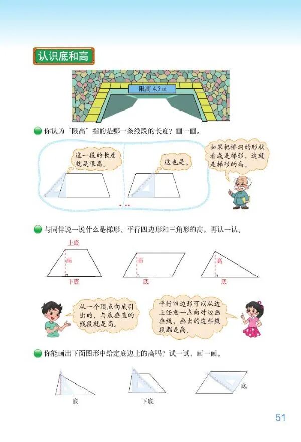 与前面所提到的知识板块不同,这里再提出一个单一的知识点,给三角形做高。这是初中数学老师告诉我一定要提醒孩子们的,说每次七年级学习图形的相关知识,碰到这个知识点,都要把小学的方法再教一遍。