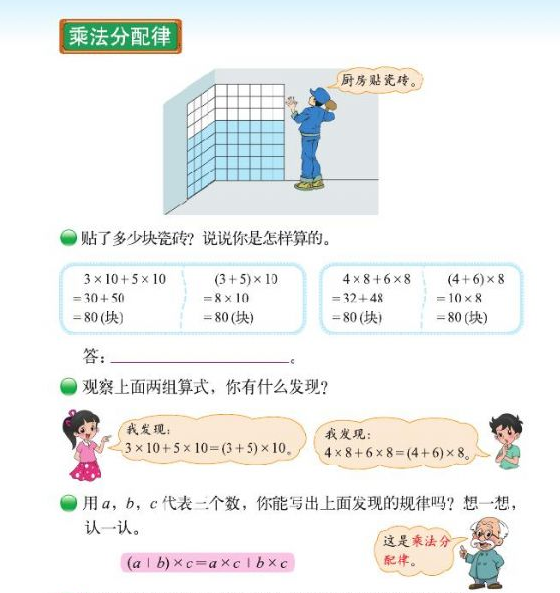 为什么小学阶段要掌握好乘法分配律呢?七年级学习整式的计算,所用的主要方法主要是合并同类项,而它的基础正是乘法分配律;八年级学习因式分解,提公因式的思想方法也来源于乘法分配律。我平时上课,包括很多有经验的数学老师,在小学阶段讲乘法分配律时,会针对班里的优等生讲解个别带有字母的算式,其实和初中接触到的这些知识用的思想方法如出一辙。