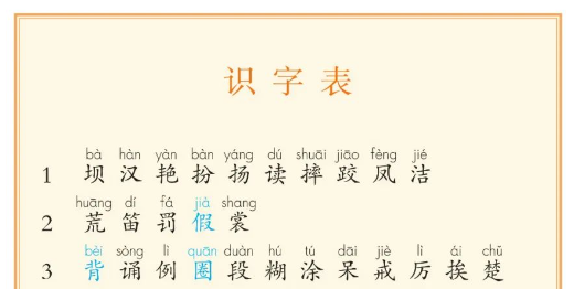每册课本后面有三表,分别是识字表、写字表和词语表。