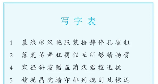顾名思义,识字表就是其中的字看到要认识,会读,放在语义中理解;写字表就高一个层次,都是本学期必须会写的字;词语表是写字表的一个补充,其中出现的词语也都是必须会写的,我们家长通常都是根据词语表给孩子听写。