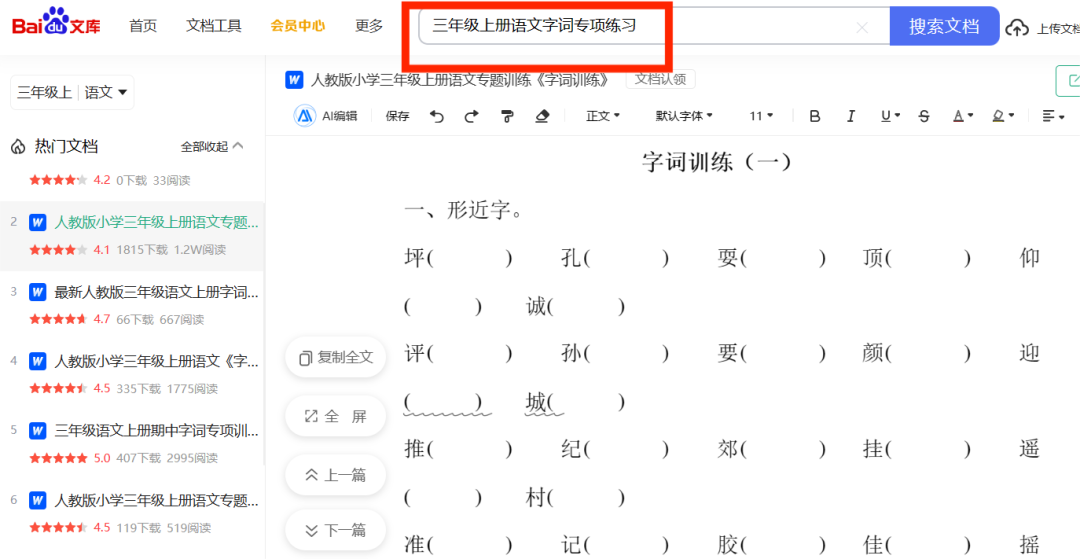 大家可以用到两个工具,一是课本最后的字词表,二是买一本过基础的练习册,如果不想购买,也可以从网上搜索本学期相关的专项练习。