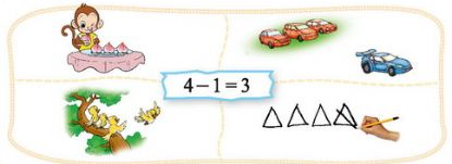 减法的本质是“去掉”,从整体中去掉一部分。以“7-3=4”这道算式为例,应该让孩子更多的体验“从7个物体中去掉3个,还剩下4个”这样的相关活动,并用自己的语言描述过程。