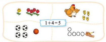 以“2+3=5”这道算式为例,应该让孩子在生活中接触大量关于“2个物体和3个物体合起来是5个物体”的例子,可以是亲身操作体验,可以是观察实物,也可以是看图说图意。