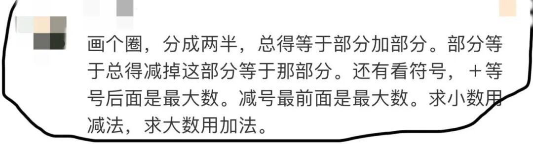 其实不仅是这些算式,在孩子整个数学学习阶段,还会面对大量的定理、公式,甚至一些所谓的做题套路,有些老师也会要求孩子背诵,我还见过有些“很负责任”的数学老师,上课让孩子把总结的规律抄在书上,然后隔天挨个检查背诵。比如之前罗罗姐还发给我一个截图,问真的有地方这样教么?那是一道()+6=15形式的题,有家长分享了如下解题方法:
