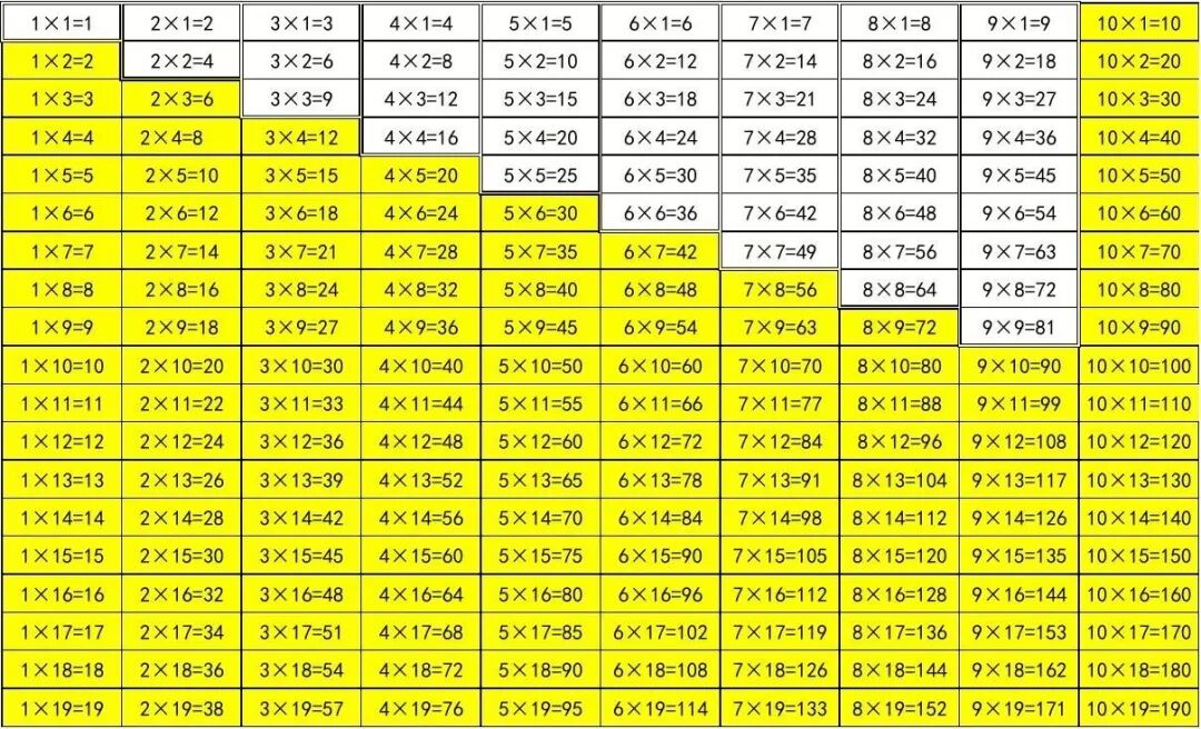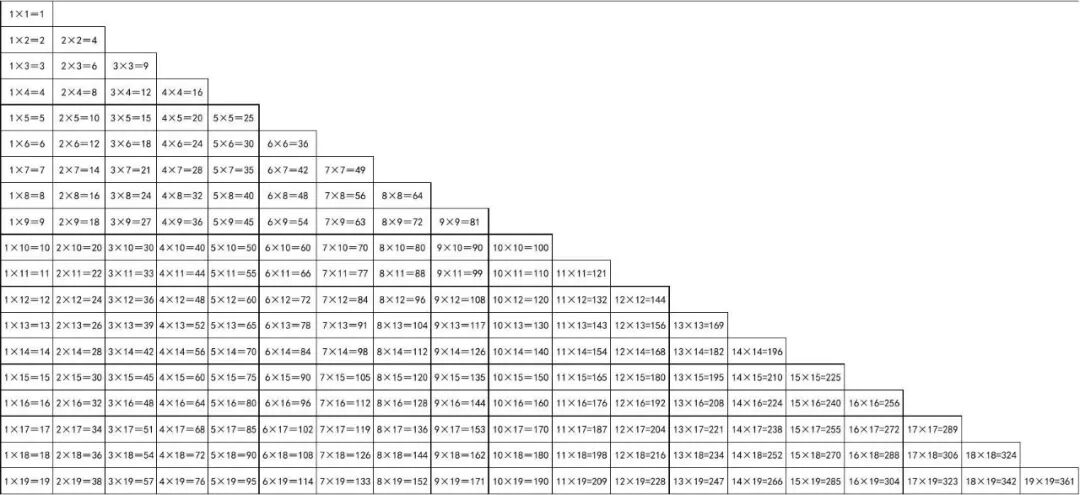 不知道上面这些表格中的算式,大家在求学生涯中是否背诵过,现在大家的孩子在上学时,有没有被要求背过。反正,大多数我是不会背的,而会背的那些,也是因为遇到的次数足够多,自然就记住了,并非刻意背诵。一些记忆力好的孩子,也会在反复练习中,把常见的算式结果能背下来,但这都是自然而然的结果。