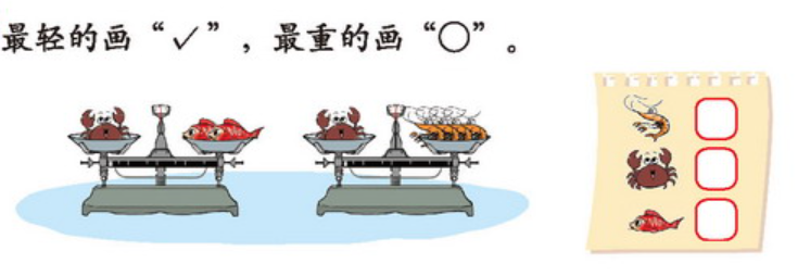 因为轻重是相对的,所以我们还要注意引导孩子说清楚:谁比谁轻,谁比谁重。