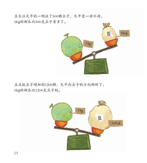 (《你好!数学》的《勇敢敏捷的猫》中就直接告知孩子,天平和我们玩跷跷板的情形是一样的。)