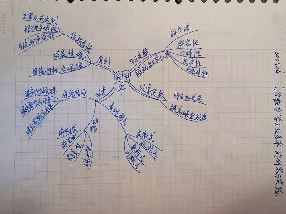 看,这是我在阅读《小学数学“学习任务单”的探究》(专业书籍,大家不需要购买,只是拿来举个例子)时记录的思维导图,这本书大概有200多页,在看的过程中,我有很多收获,但整本书都记相当于什么也没记。我们要学会寻找关键的字词句,有可能是书中的,也有可能是自己抽象总结出来的。在“学习任务单”这个主题分支下,我将书本的内容分为四大类,这个分类的过程也是梳理整本书内容的过程,而在每个类别中,又存在其相对应的分支,它们都有内部的联系。