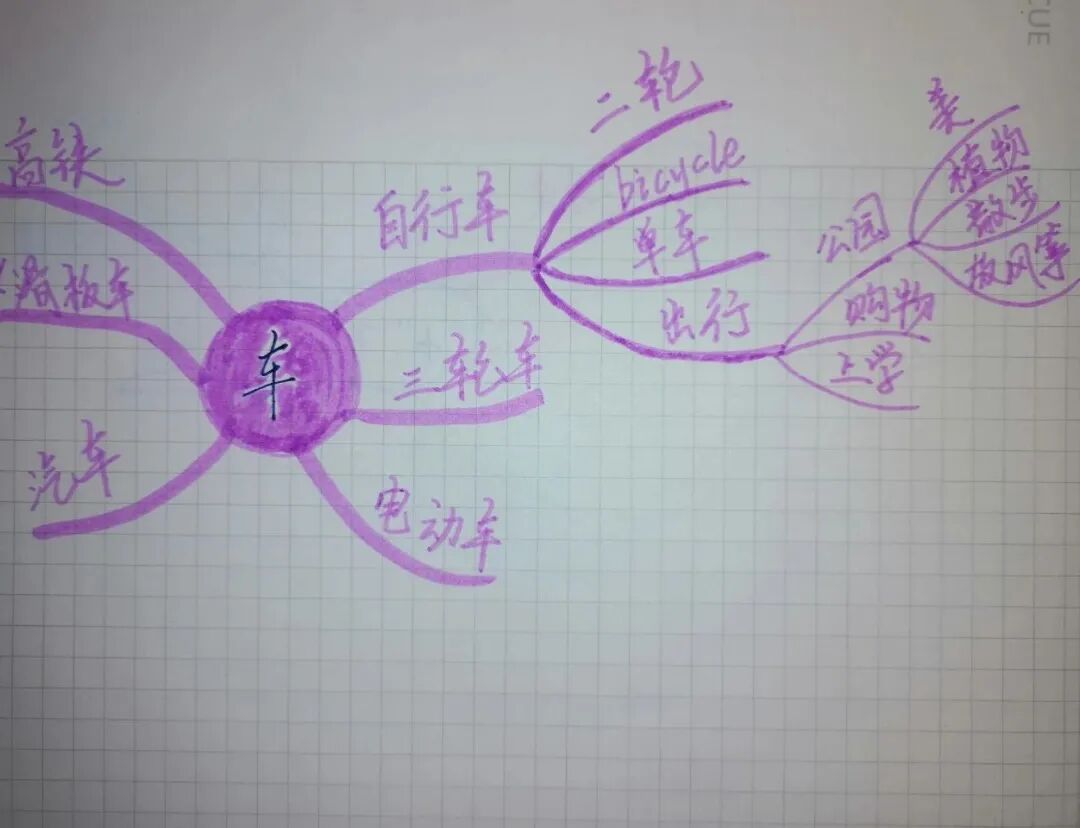 前段时间,我和萌萌一起在书房里,我看书,她画画,不经意间一撇,发现她自己做了一个思维导图(很丑的那种),简单的说,她以“车”为主题,分支出了汽车、火车、自行车,电动车。那是我第一次看到她画思维导图,还是挺意外的,因为我从没刻意教过她,现在想来也就是疫情期间在家上网课,给我们班孩子讲过,她那会全程跟着我听四年级的网课,可能耳濡目染吧。可见,我们想让孩子学的知识,不必等到他该学时,一股脑抛给他那些技巧和方法,而是应该提前先让孩子在生活中接触。