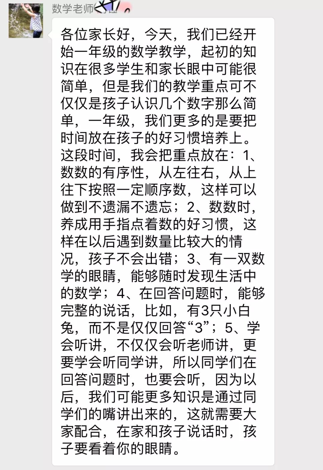 送六六去现在这个学校时考虑的因素,我在《多番考察和优劣势对比后,我给六六选了这样的小学》跟大家分享过,当时考虑过更多的是时间安排,午托,以及英语教学,对数学方面的教学我是不太了解的,只知道升学时成绩还不错。但第一次在六六的班级群里看到小周老师的留言时我就安心了: