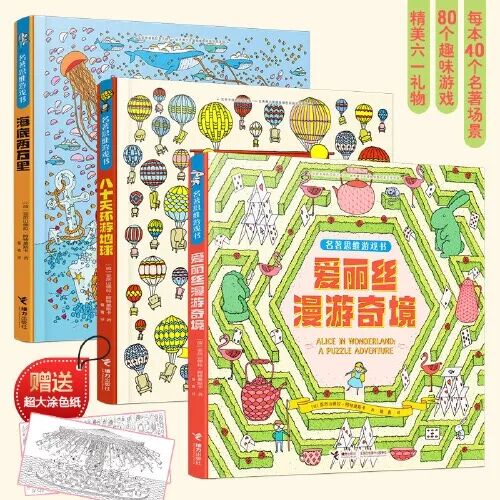 这套书的情境创设来源于三套名著《爱丽丝漫游奇境》《八十天环游地球》和《海底两万里》,如果孩子恰巧读过这三本名著,代入感会更强,没有读过,也丝毫不影响孩子被它精美的画面吸引。