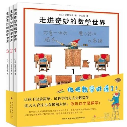 这套书也来自安野光雅,他的图画总是那么的有魅力。很多人将它归类为数学绘本,但在我看来,它其实就是一套值得珍藏,印刷精美的练习册。本书以两个小矮人为线索,用非常简单的数学故事,串起来一个个简单的数学游戏,数学问题,将数学问题蕴藏在我们身边,让孩子以简单、科学的方式走近数学,爱上数学!