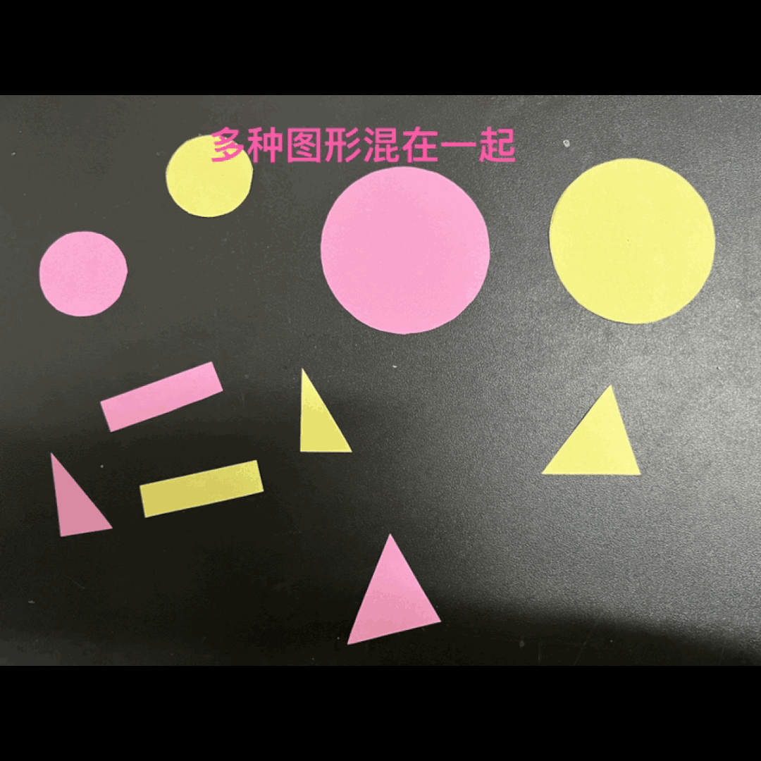 比如,可以准备两个一样的大圆,两个一样的小圆,在孩子眼中,大小不同的圆还不是一种图形,因为此时孩子还不能抽象出每种图形的共同特点。孩子在寻找相同图形时,通常需要对图形进行旋转和重合,这是对图形的初步感知。