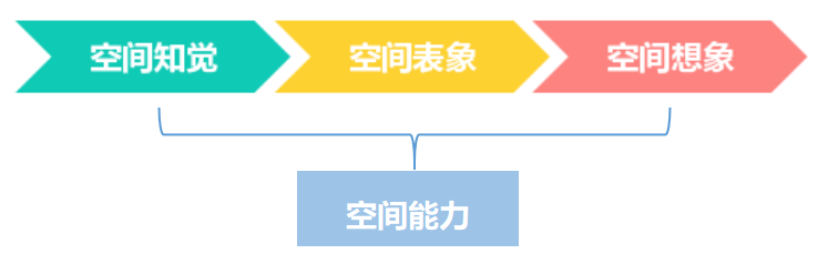 空间能力主要包含空间知觉、空间表象和空间想象能力。其中空间知觉是指关于物体、图形的形状、大小,之间的距离、方位等位置关系的知觉。空间表象是在大量空间知觉的基础之上,形成的关于物体、图形的形状、大小及相互位置关系的印象。空间想象是指在物体或图形的影响下,在言语的调节下,头脑中已有空间表象经过加工、改造、结合,产生新表象的心理过程。