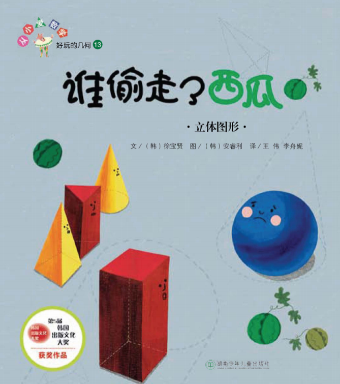 这里推荐数学绘本《从小爱数学》系列中的《谁偷走了西瓜》,以及启蒙町数学积木中配套的平面图形挑战题卡。《谁偷走了西瓜》以前给大家介绍过,其中的故事情节就是根据泥土地中留下的痕迹,寻找立体图形。