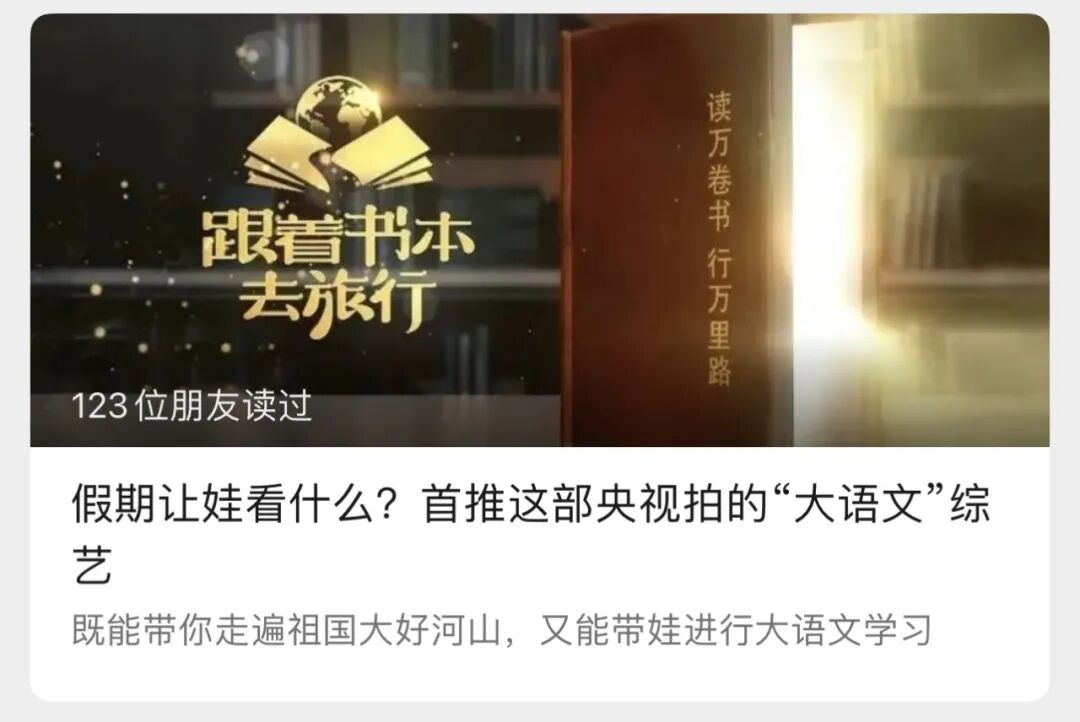3.昨天给大家推荐了纪录片《跟着书本去旅行》,在假期里,带孩子看起来,既增长知识,又促进学习。
