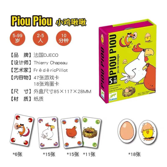 之前给大家推荐的桌游更多是提升孩子的空间观念,但其实在数学学习中,逻辑思维也占了相当重要的比例,后续我也会写文和大家分享,今天先推荐一款经典有趣的卡牌类游戏小鸡啾啾。