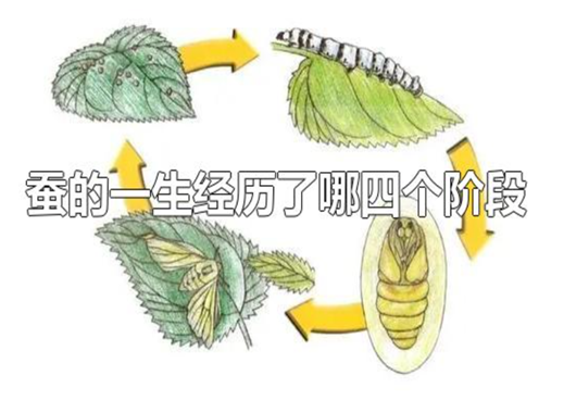 蚕的一生分为四个阶段,卵、幼虫、蛹、成虫(蚕蛾)。