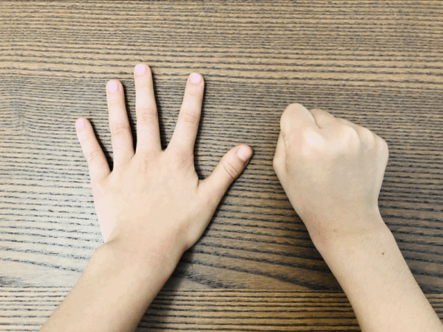 如果觉得用工具,买绘本都很麻烦的话,其实我们随身携带的就有一个好工具:我们的双手,刚好有10根手指头,孩子在学前,可以随时利用10根手指头表示分一分的过程。比如下图伸出的手指和蜷起来的手指,合起来是10根,10根手指可以55分,64分,73分等等。