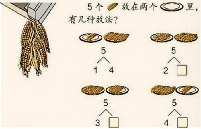 图2 就是利用实物,展示了5的分解与组成。