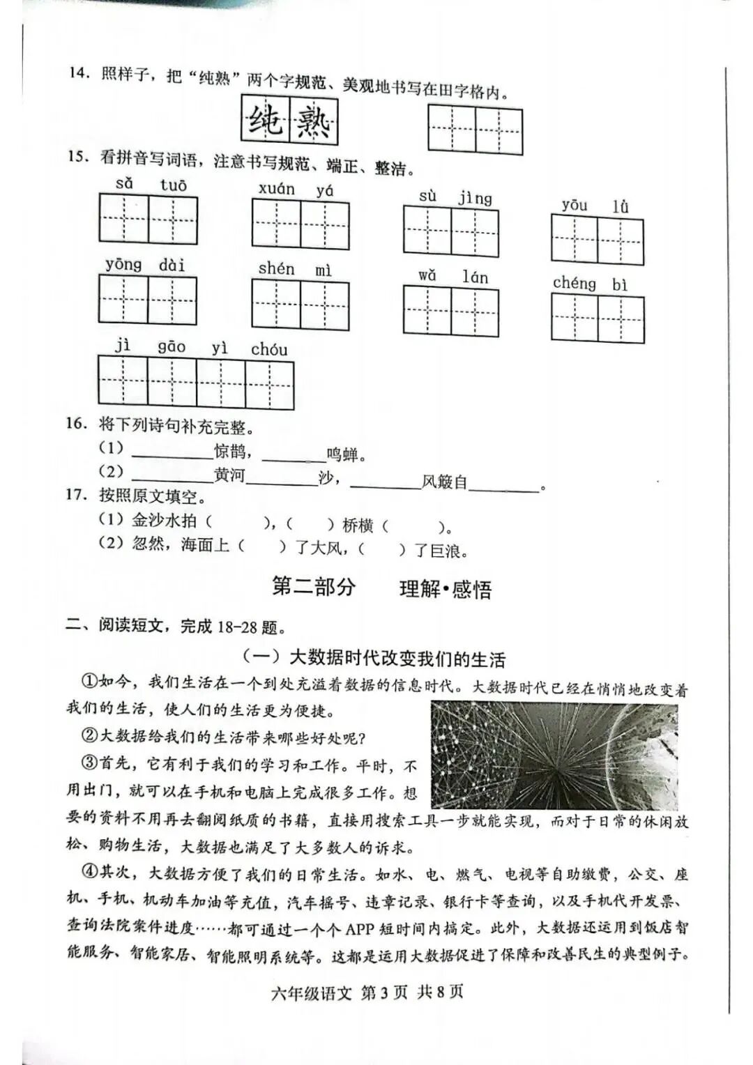现在的语文试卷中对于基础知识的直接考查在减少,甚至到了高年级就不再有直接的生字词题目,但既然有大量的阅读写作,那么生字词自然是基础,这点很好理解,如果孩子不会写字,有见解的想法,优美的语句也写不出来啊。