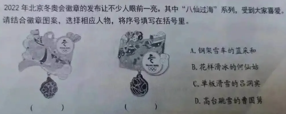 下面的题目和冬奥会相关,但又拓展了很多其它知识,孩子不仅要了解冬奥会,还需要大量的课外阅读积累。