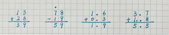 开始学习竖式后,孩子们在横线格的本子上书写,就会经常出现竖式不能对齐的情况,这是计算的重要错因之一,尤其是到了高年级,随着计算步骤的增加,竖式越来越长,如果不能相同数位对齐,就会频繁的出错。但在方格本上书写,哪一列数字对整齐,清清楚楚的,就能很好的解决这个问题。