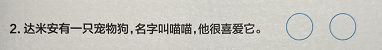 再比如这里有一个判断题是“达米安有一只宠物狗,名字叫喵喵,他很喜爱它。”书中并没有直接介绍达米安的宠物,却有一处细节描写是“我的猫咪喵喵跳上了我的床。”这就需要孩子在阅读时,关注每一处细节。