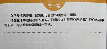 针对故事中发生的不同事件,每个孩子的看法可能是不一样的,好多阅读单中就设计了让孩子针对某件事情发表自己看法的题目,但不论是何种看法,都要说清楚原因。