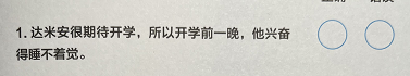 比如在《新朋友》这本书中,开篇用了很长一段文字来描述“我”开学前一晚的表现和心理活动,但阅读单中的判断题第一个问题,只用了非常简单的一句话“达米安很期待开学,所以开学前一晚,他兴奋得睡不着觉。”就对这几段文字进行了总结概括。