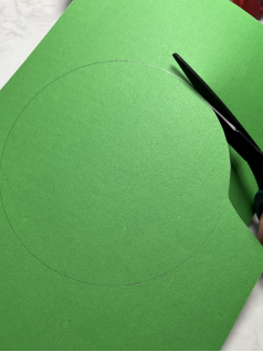 之后让孩子用剪刀将这个圆剪下来。虽然孩子可能剪的不是很规整,但建议让他们自己多尝试,这也是一个锻炼手部精细肌肉的机会。