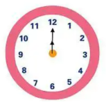 这里要引导孩子多观察时针的位置,是指着两个数字中间的位置的,为后续认识其它时间做铺垫。