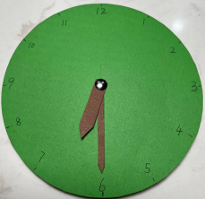 在制作钟表模型的过程中,孩子已经对钟表的结构有了更深一步的了解,之后就可以利用这个模型,玩认表和拨表针的游戏了。