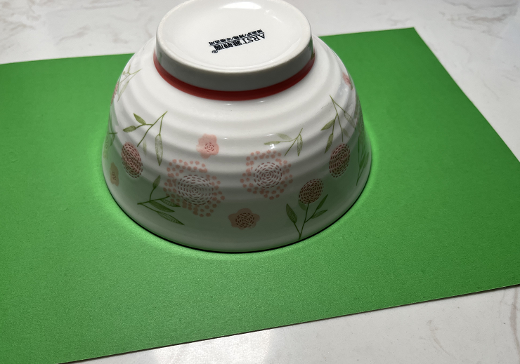 可以先选定一个圆形物品,比如说碗口或者盘子,扣在卡纸上,用铅笔沿着碗口就能画出一个圆了。