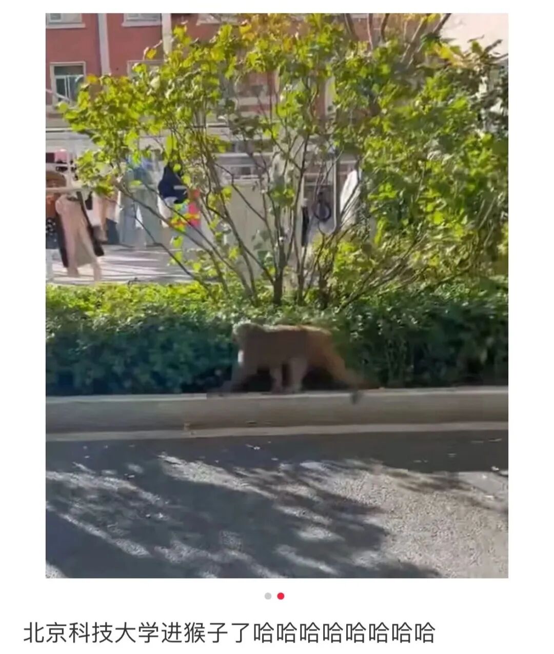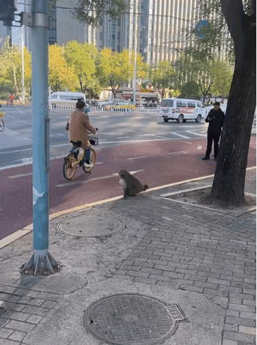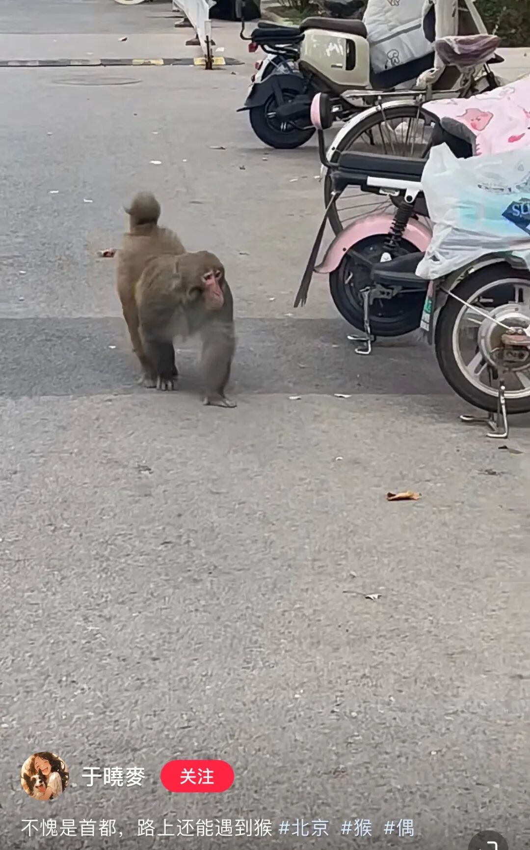 ▲小红书网友在首都路上遇见的猴