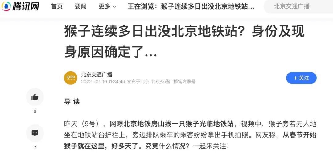 2022年在北京房山地铁站里出现的猴: