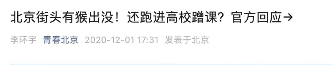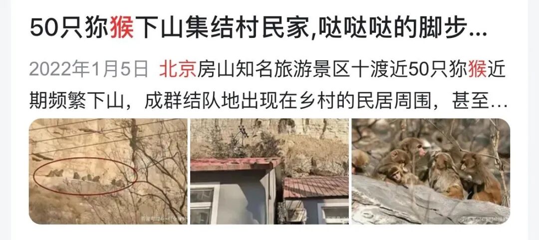 往后倒到2020~2022年,北京目击猴出没的新闻层出不穷。