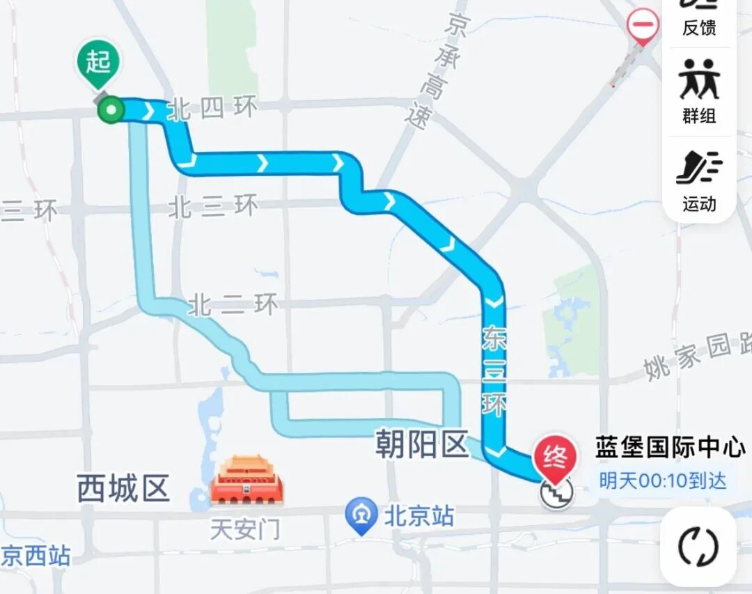 大望路蓝堡到学院路的距离大概有这么远。