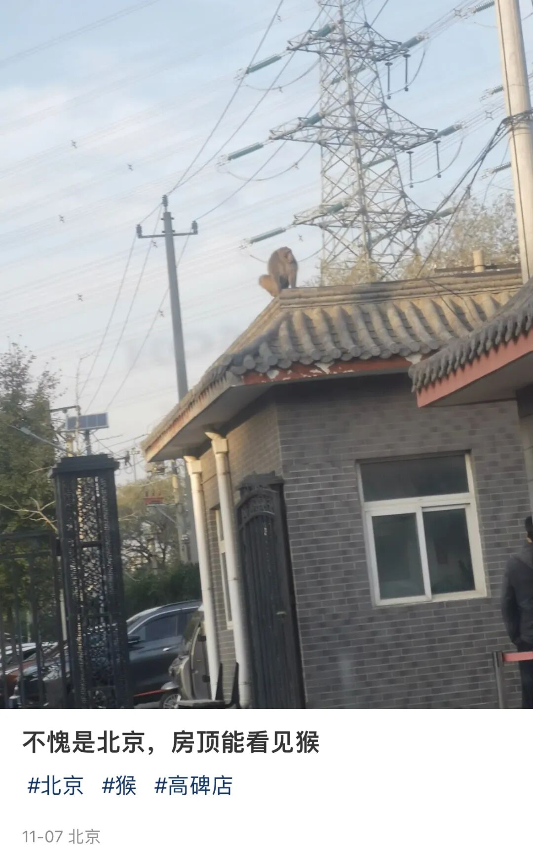 小红书网友在高碑店地区拍摄到的屋顶猴: