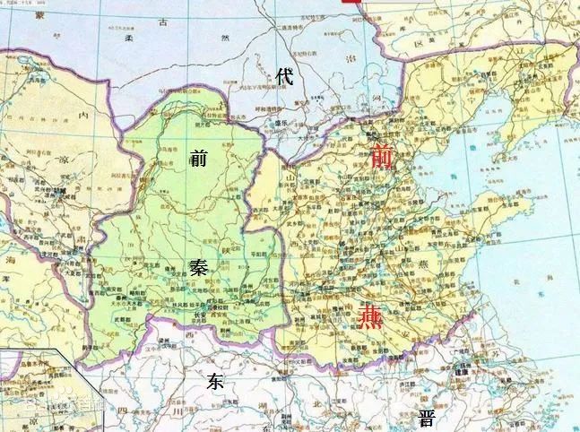▲前燕的疆域,与前秦、东晋三足鼎立。图源/百度百科