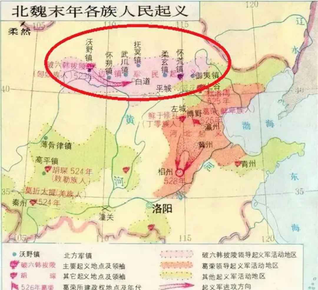 与此同时,为了补充兵源,北魏朝廷又将六镇定为囚犯充军之所。如此一来,六镇常年良莠混杂,社会动荡不安。