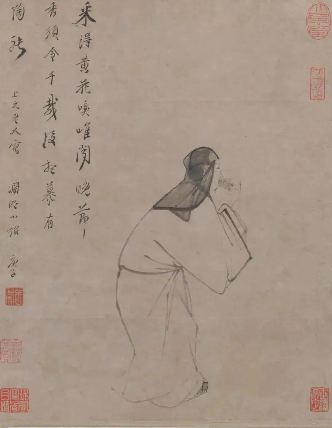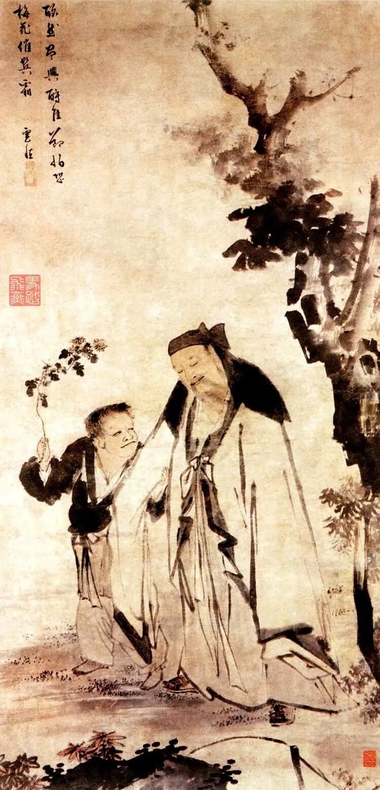▲【明】张风:《渊明嗅菊图轴》。图源:网络