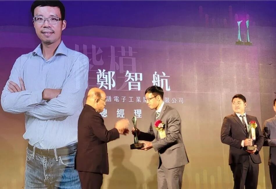 频谱电子工业总经理郑智航,获得了“稳健再造企业家奖”,他可说是接班有成的企二代。