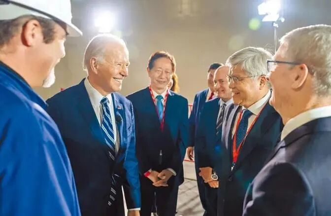 2022年底,在台积电美国厂的上机典礼上,当时出席仪式的美国总统拜登高兴地说:“美国制造回来了!”此后,台积电创办人张忠谋的夫人、台积电慈善基金会董事长张淑芬在基金会举办的公益记者会上,主动秀出自己与拜登49年前合照。