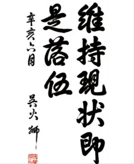 今天,无论是新光吴火狮纪念医院,还是新光系列基金会、还有新光人寿等办公场地,均有悬挂创办人吴火狮经营哲学之“十六字箴言——“维持现状即是落伍,只要乐观就有希望。”