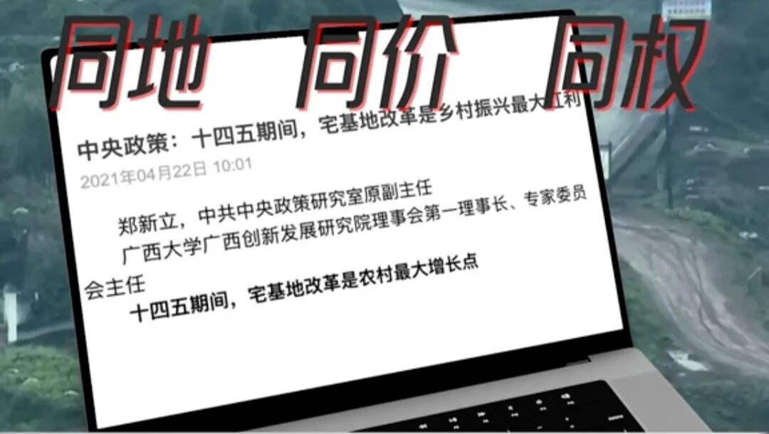 你看未来这宅基地啊,有可能成为非常有价值的资产。看张图,前两年呢十四五规划里面专门提了一个关于土地改革方案,同地 同价 同权。